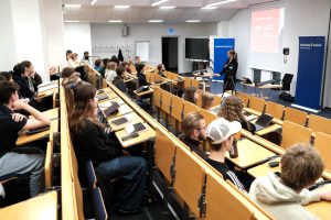 Hannover/Göttingen/Braunschweig, 18.11.2025 |  Beim CollegeAbend zum Thema „Banken und Finanzwesen“ tauchten Schülerinnen und Schüler in die Welt des Geldes, der Banken und der Geldpolitik ein. In Göttingen gestalteten Fabian Gieseke (Deutsche Bundesbank, Hauptverwaltung Bremen, Niedersachsen und Sachsen-Anhalt) und Helena Dietrich (Filialleiterin der Sparkasse Göttingen) den Abend, “ in Hannover referierten Fabian Gieseke und Katrin Grellmann (Regional Sales Manager bei der Deutsche Bank AG) und in Braunschweig trugen Fabian Gieseke und Nicole Mölling (Bankdirektorin der Volksbank Salzgitter/Sickte) vor.