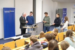 In Göttingen dozierte Prof. Kilian Bizer, Dekan der Universität Göttingen, und startete den Abend mit einem interaktiven Austausch zum Wandel des Infrastrukturbedarfs. Schnell wurde klar: Ohne funktionierende Verkehrsnetze, effiziente Logistik und stabile Versorgung sind heutige Wirtschaftsprozesse nicht denkbar. Im Mini-Workshop analysierten die Jugendlichen, dass frei verfügbare Infrastruktur niemals kostenfrei ist. Die zentrale Erkenntnis: Allgemeine Verfügbarkeit erfordert auch eine allgemeine Beitragspflicht – über Steuern, Gebühren oder Abgaben. Auch bei privaten Lösungen bleibt die Finanzierung letztlich gesellschaftliche Verantwortung.