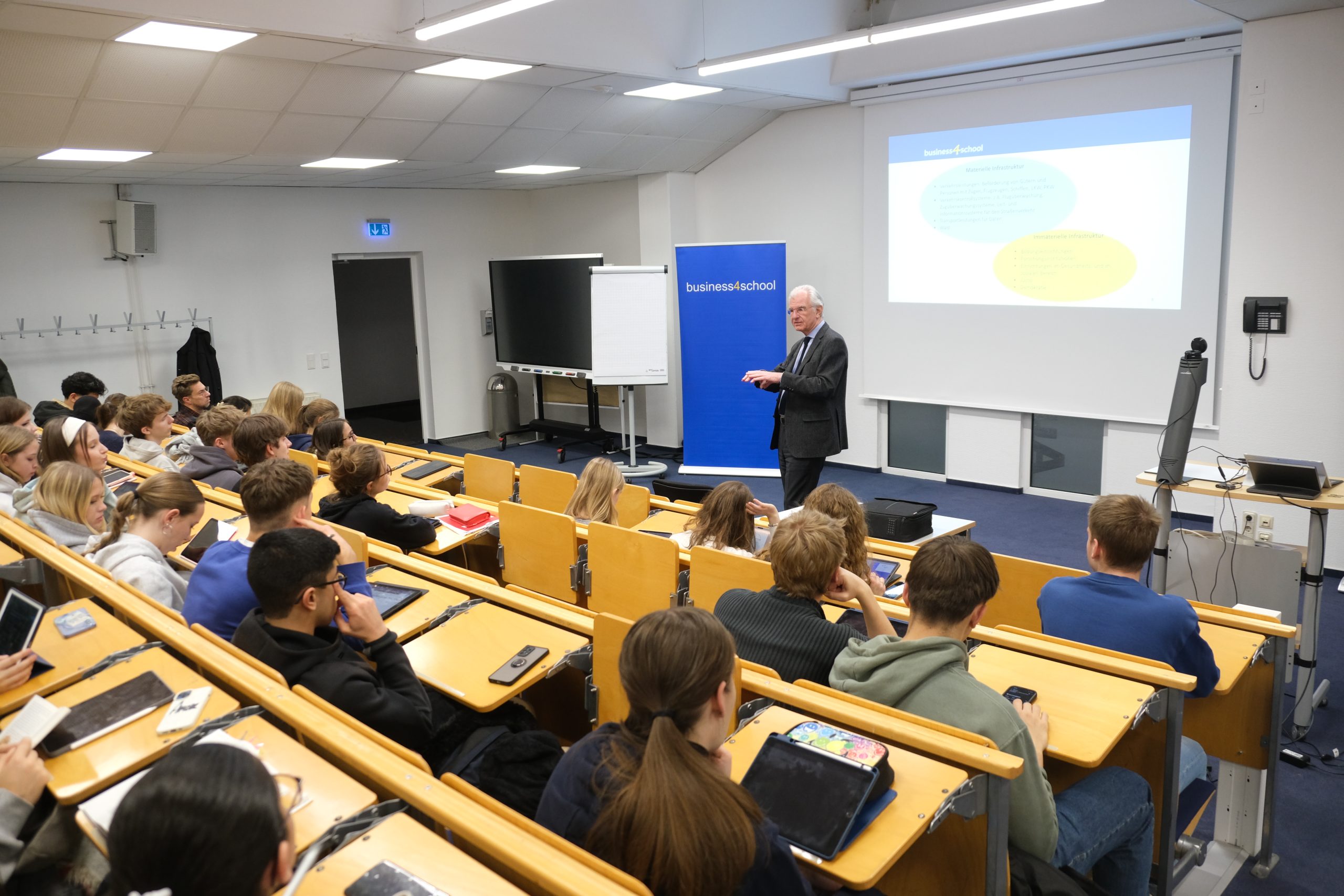 In Göttingen dozierte Prof. Kilian Bizer, Dekan der Universität Göttingen, und startete den Abend mit einem interaktiven Austausch zum Wandel des Infrastrukturbedarfs. Schnell wurde klar: Ohne funktionierende Verkehrsnetze, effiziente Logistik und stabile Versorgung sind heutige Wirtschaftsprozesse nicht denkbar. Im Mini-Workshop analysierten die Jugendlichen, dass frei verfügbare Infrastruktur niemals kostenfrei ist. Die zentrale Erkenntnis: Allgemeine Verfügbarkeit erfordert auch eine allgemeine Beitragspflicht – über Steuern, Gebühren oder Abgaben. Auch bei privaten Lösungen bleibt die Finanzierung letztlich gesellschaftliche Verantwortung.