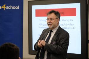 In Fraktionssitzungen, einer Expertenanhörung, der Plenumsdebatte sowie der abschließenden Abstimmung konnten die Teilnehmenden die Abläufe politischer Meinungsbildung, Abwägung und Entscheidungsfindung im parlamentarischen Prozess nachvollziehen. Für eine realistische Atmosphäre sorgte die Sitzungsleitung durch Ulrich Herfurth, Wirtschaftsanwalt in Hannover und Brüssel, in der Rolle des Landtagspräsidenten. Die lebhafte Debatte verdeutlichte die Herausforderungen, Sicherheit, Freiheit und Zukunftsfähigkeit miteinander zu vereinbaren.